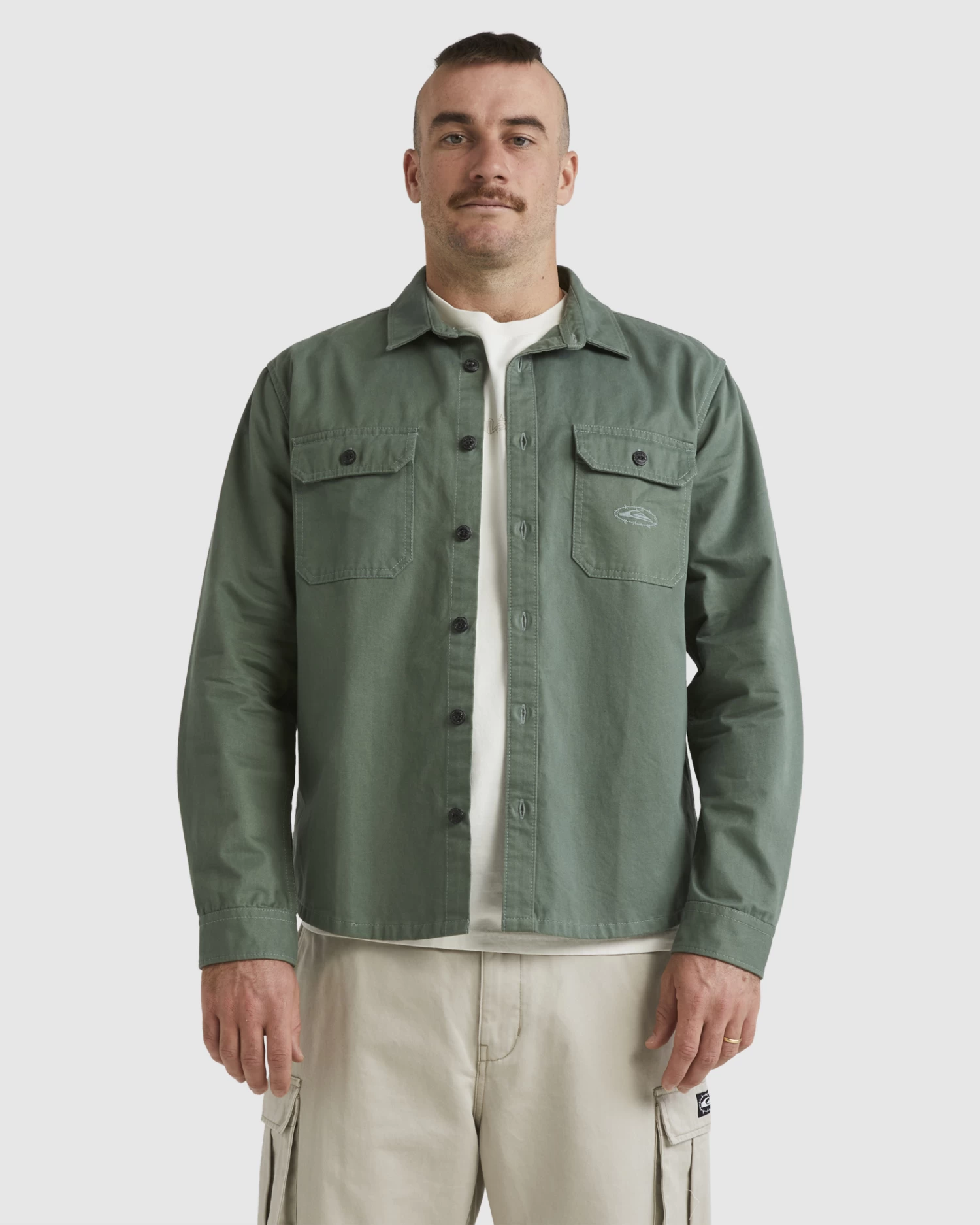 - Quiksilver seasonal embroidery tonal at left hand side chest pocket